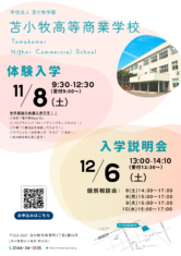 11/8(土) 体験入学 9:30~ 上記11月イベントのお申し込みを受付しています。 お電話でのお申し込みも …